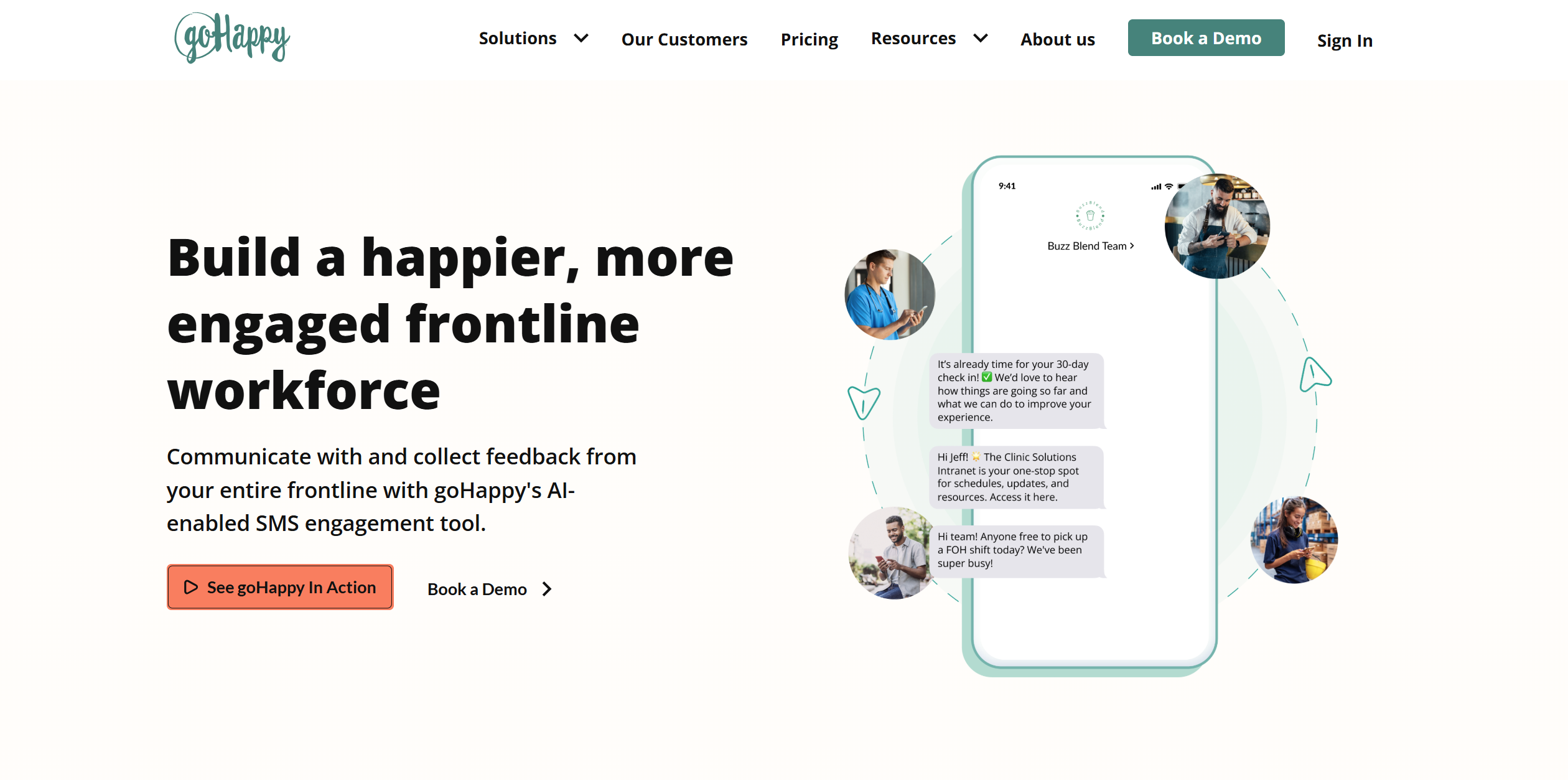 goHappy is transforming how employers communicate and engage with their frontline workers by providing the most powerful, simple and inclusive app-free frontline engagement technology. The key to goHappy's success is enabling employers to reach 100% of their frontline employees. The team at goHappy has been operating in the frontline employee space for over 25 years and its mission is to help ALL frontline workers feel more valued and connected so they can reach their full potential. In turn, employers not only improve communication to maximize engagement and happiness within their frontline employees, but also benefit from the bottom-line impact that those improvements deliver. For more information on goHappy and its suite of frontline employee engagement solutions, visit