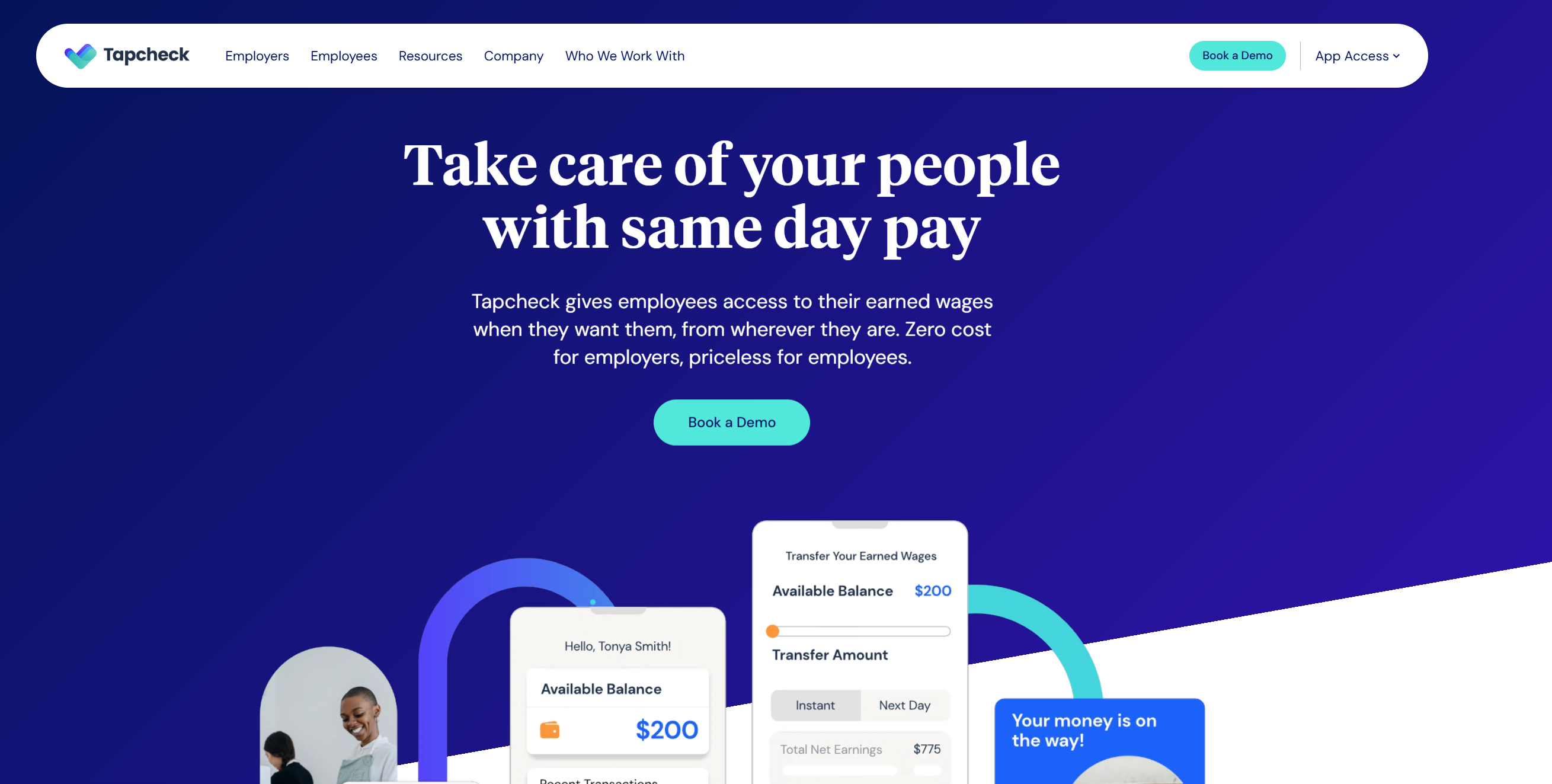 Tapcheck is the leading on-demand pay provider, empowering employees to take control of payday. The easy-to-use platform integrates seamlessly with 250 employer payroll and timekeeping systems, which ensures accurate balances and a hassle-free experience for businesses and their employees. Offered at no cost to an employer, employees use Tapcheck to access wages that they’ve earned, safely and responsibly – without the worry of hidden fees, over advances, or payroll errors. Tapcheck’s proprietary earned wage access engine offers the most accurate, reliable, and headache-free on-demand pay solution for workers and their employers. Companies never lose control of payroll and employee paychecks always reflect their advances.