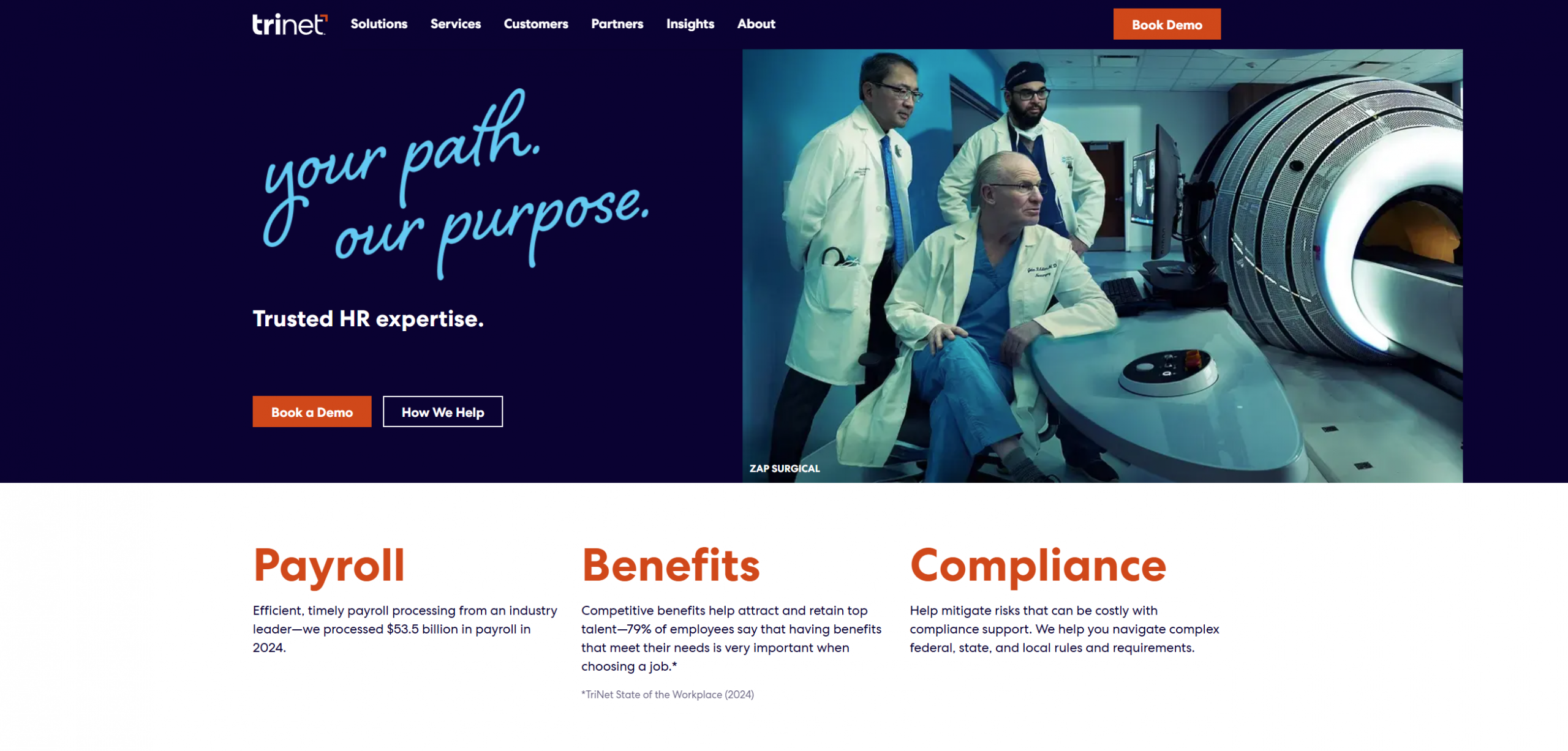 TriNet is a leading provider of Human Resources solutions for small and medium size businesses, offering advanced technology-enabled services that include human capital expertise, employee benefits such as health insurance and retirement plans, payroll and payroll tax administration, risk mitigation, and compliance consulting. Our long-term objective is to be the premier provider of HR services for a broad range of SMBs through industry leading benefits, sales distribution excellence, and a world class services delivery model. For more information, visit TriNet.com or follow us on Facebook, LinkedIn and Instagram.