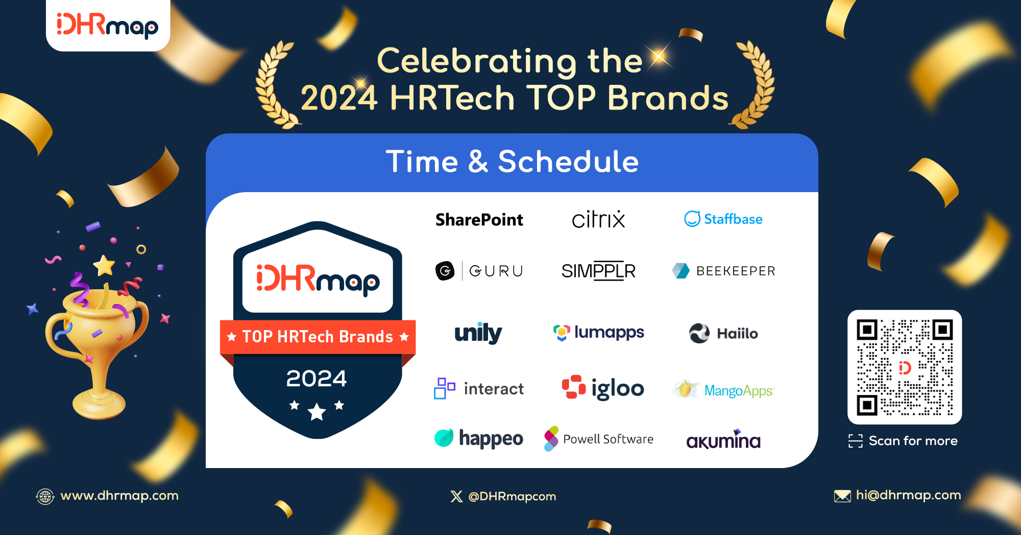The 2024 DHRmap Top HRTech Brands recognition is an initiative by the leading HRTech media outlet, DHRMap.com, aimed at assisting HR executives worldwide in navigating the vast ocean of HR tech products. DHRmap commits to publishing the digital HR Brands and market map biannually (typically in June-July and December-January) to capture the latest market trends accurately. The selection process involves the DHRMap editorial team's meticulous evaluation of various factors, including brand presence, financial strength, product innovation, market influence, and ratings on third-party platforms.